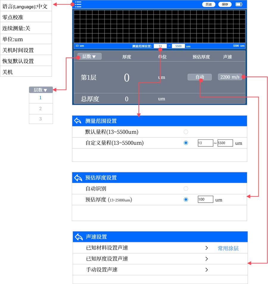 參數設置流程- 層數:可設置1-3層,設置正確的層數,測量更精準。